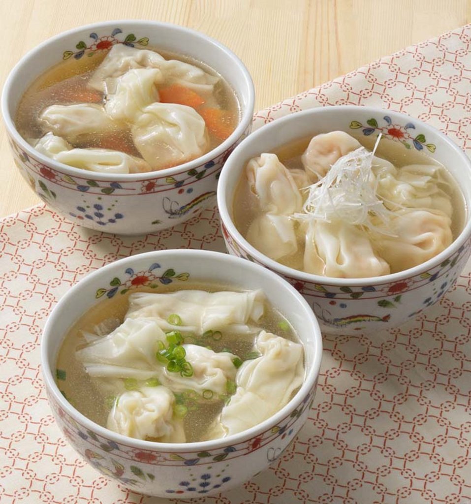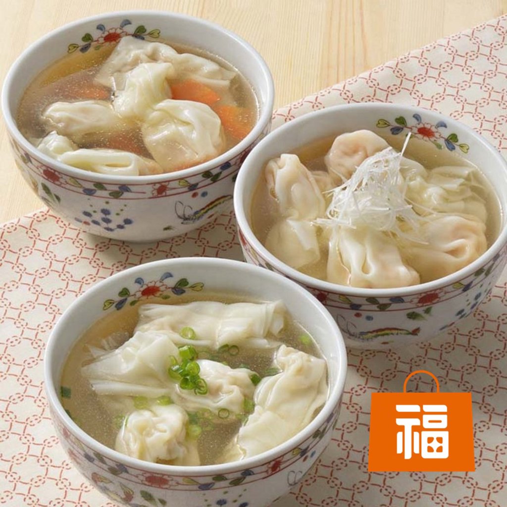 「海鮮ワンタンえび・塩スープ付」「海鮮ワンタンかに・塩スープ付」を詰め合わせたお得なセットを作りました。運賃込みでお得にお買い求めいただけます。